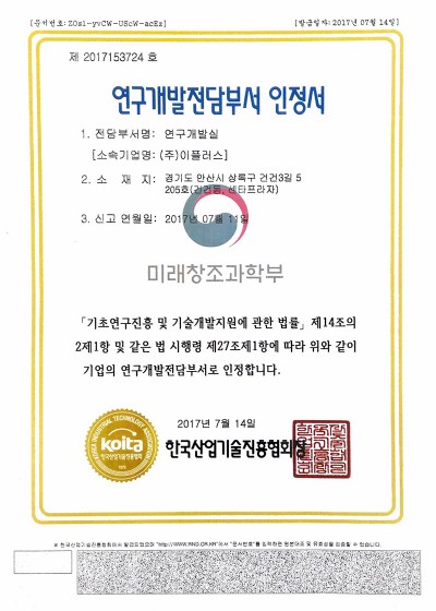 연구개발전담부서 인정서
