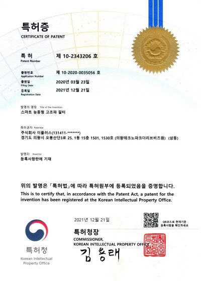 [특허증] 스마트 능동형 고조파 필터