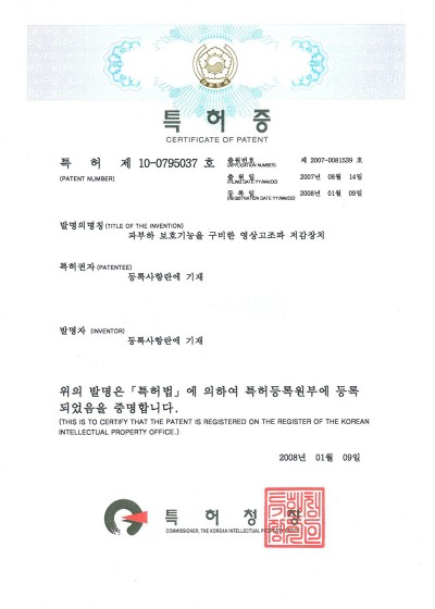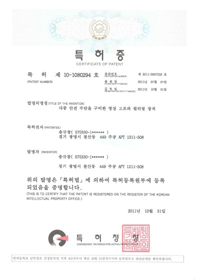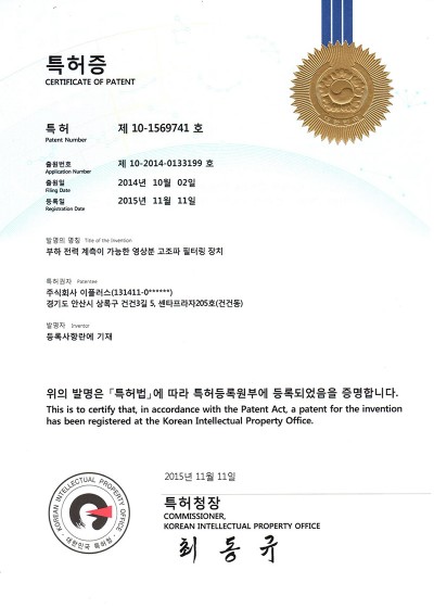 [특허증] 다중 안전수단을 구비한 영상고조파 필터링 장치