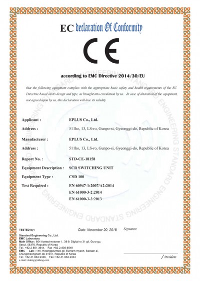 CE 인증(SCR SWITCHING UNIT/CSD 100)